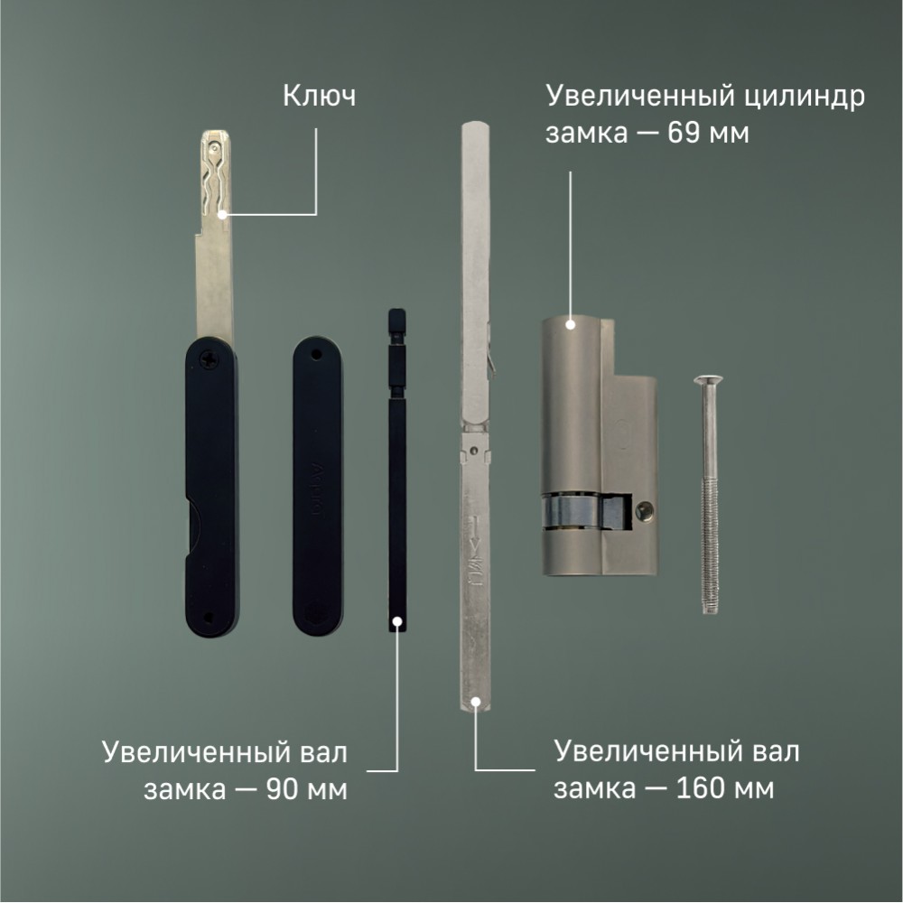 Стандартная комплектация Aqara N100 рассчитана на двери определённой толщины. Если ваша дверь толще стандартной, без дополнительных аксессуаров замок не будет установлен корректно. Данный набор расширяет возможности монтажа и позволяет использовать умный замок даже на массивных полотнах.