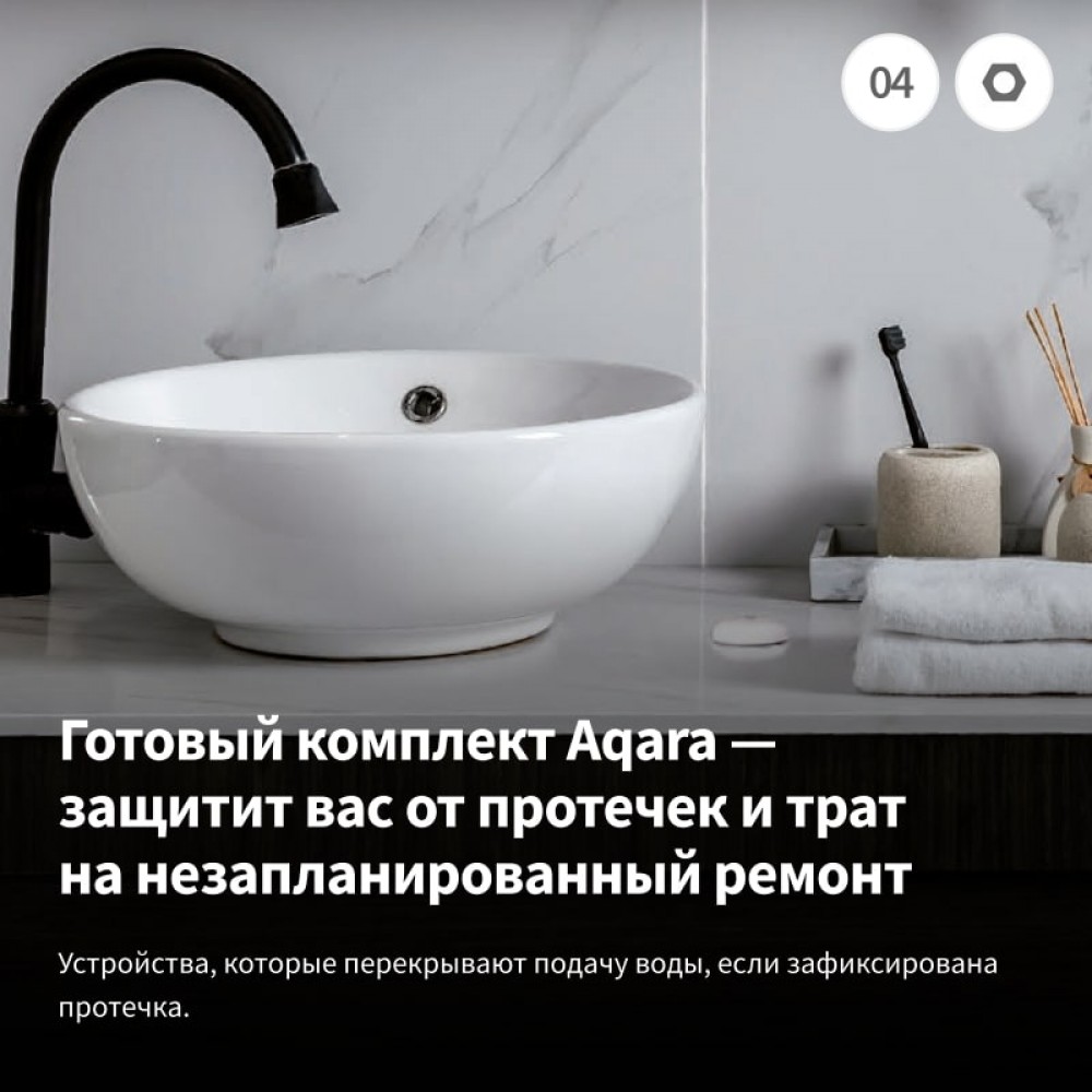 Защитите свой дом от неожиданной протечки воды с помощью умного набора Aqara. Этот комплект объединяет в себе всё необходимое для автоматического контроля и моментального реагирования на аварийные ситуации: интеллектуальный хаб, чувствительный датчик протечки и надёжный электропривод для перекрытия воды.
