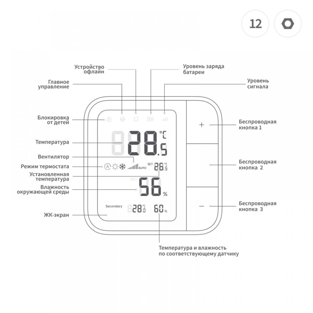 - Точный контроль температуры – измеряет с высокой точностью, обеспечивая комфорт и предотвращая резкие перепады.