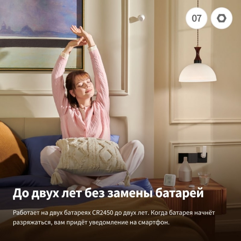 - Интеграция в умный дом Aqara и Apple HomeKit – легко подключается к экосистеме через шлюз и работает в автоматических сценариях.
