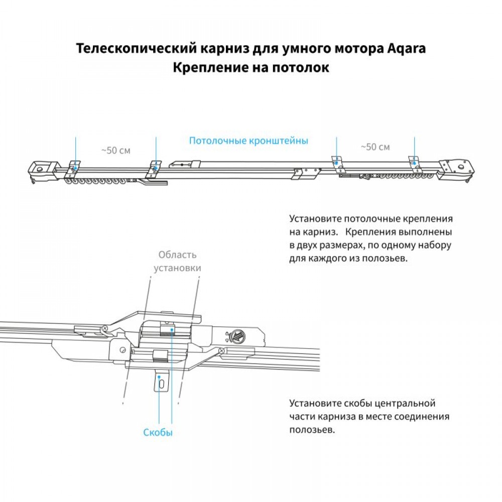 Карниз совместим с умными системами Aqara и может использоваться вместе с автоматическими приводами для штор, что делает управление освещением в доме еще более удобным.