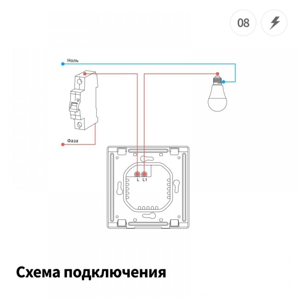 1. Работа без нейтрали – выключатель не требует дополнительного провода, что делает его совместимым даже со старыми системами электропроводки. Идеальное решение для замены обычного механического выключателя на «умный».