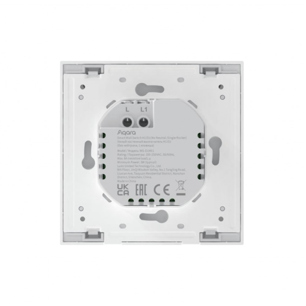 Главная особенность модели — работа без нейтрального провода, что делает установку возможной даже в старых квартирах и домах. Одноклавишная конструкция обеспечивает простое и удобное управление светом, а поддержка экосистемы Aqara позволяет интегрировать устройство в умный дом и управлять освещением через приложение или голосовых помощников.