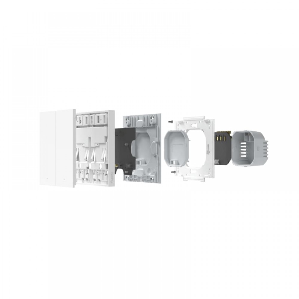 Модель не требует нейтрального провода, что делает её совместимой с большинством электрических систем в Европе. Две механические клавиши обеспечивают удобное управление сразу несколькими группами освещения или устройствами.