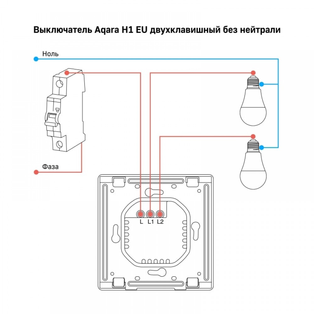 Умный настенный выключатель Aqara H1 EU (без нейтрали, 2 клавиши), цвет: тауп